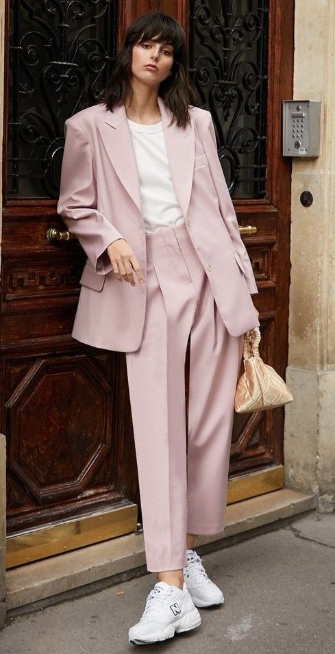 - Workwear Update: A grey suit with a blush pink blouse or scarf.
